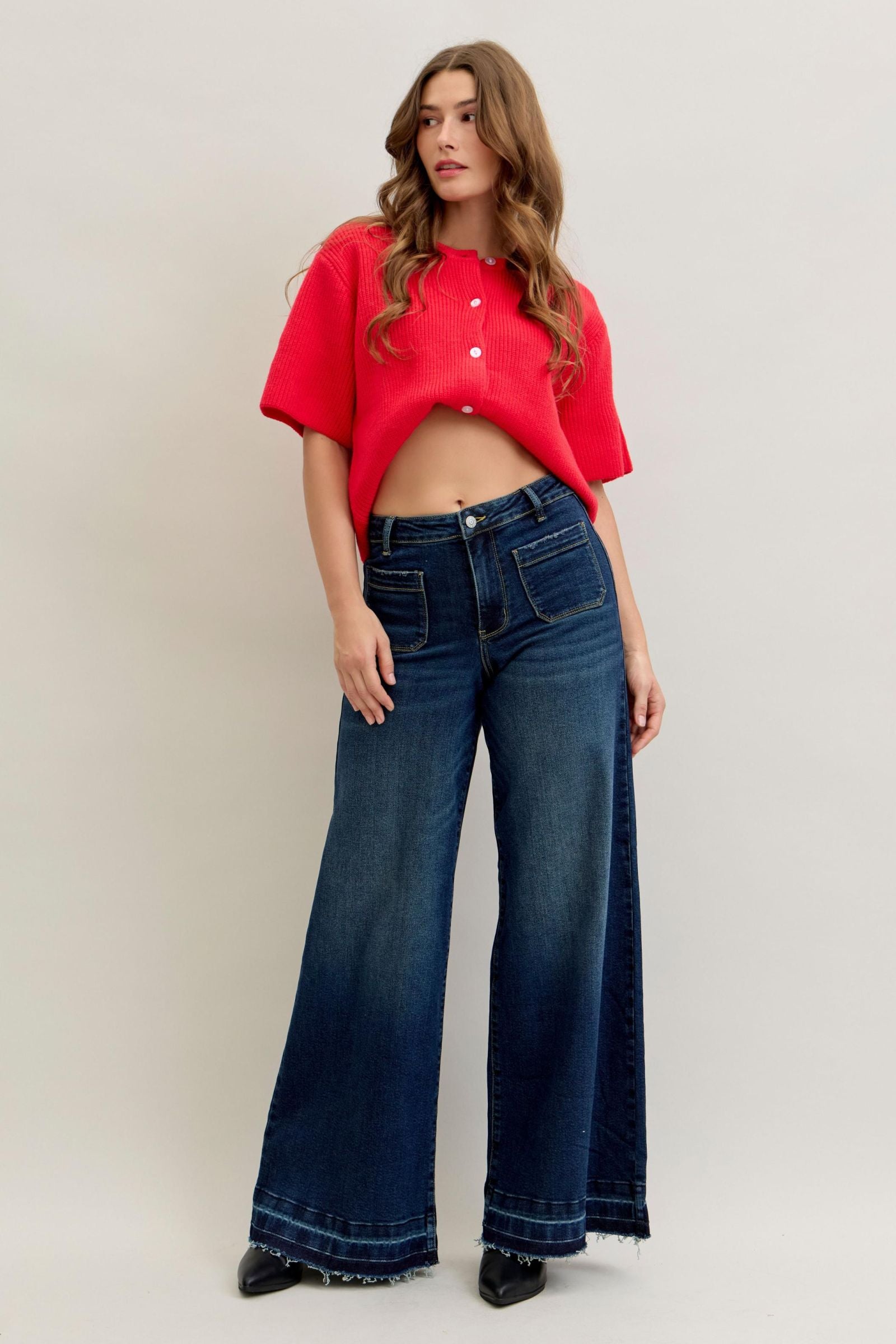 These are the cutest, comfiest jeans we’ve seen! We love the wide leg and front pockets. These run roomy, we recommend sizing down 2 from your normal size.